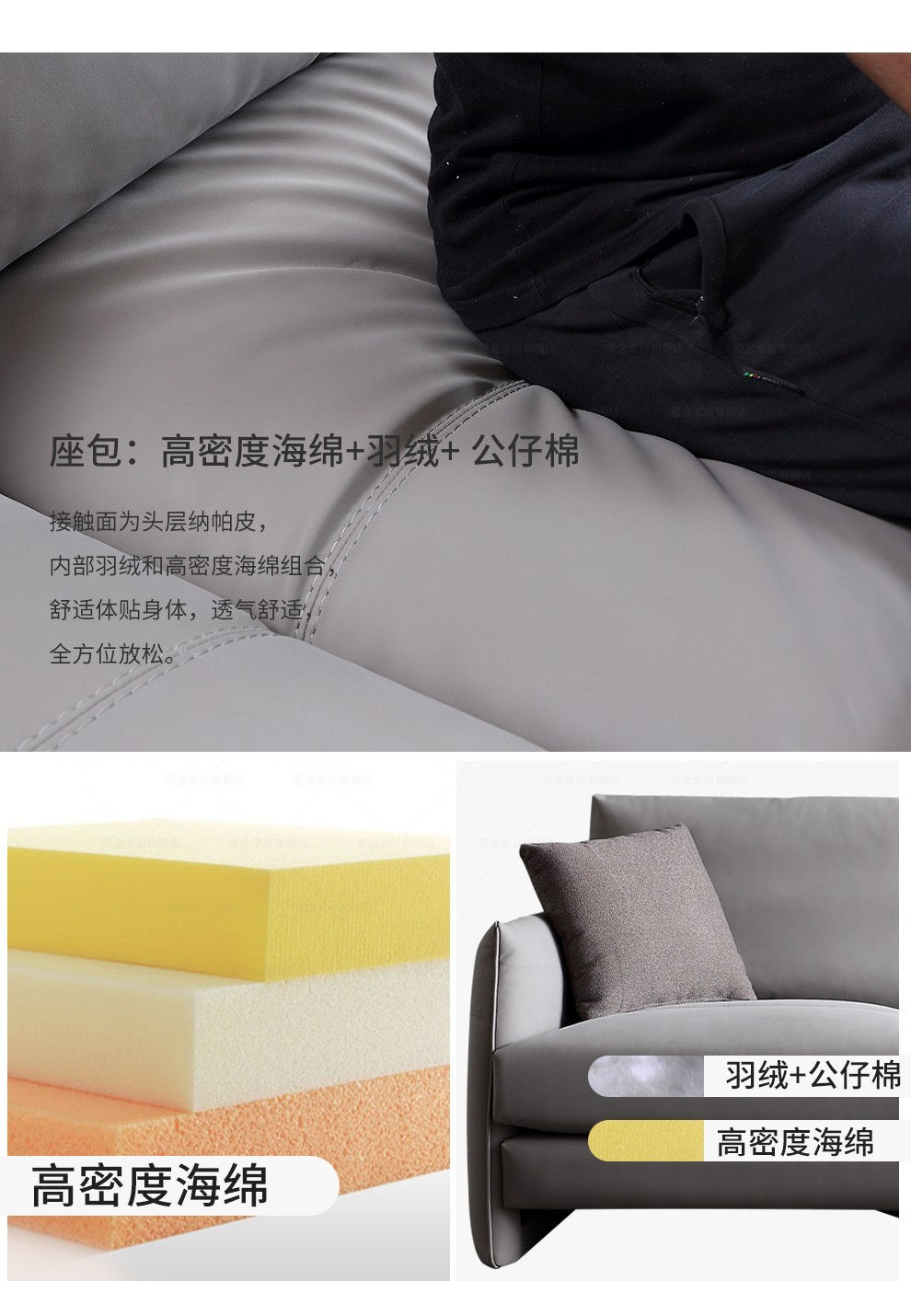 愛念の真皮のソファーの小型タイプ三人のイタリア式軽い贅沢な頭の階の牛皮の回転角のソファーの組み合わせは簡単に現代の客間の家具1902〓灰色【砂の真皮をつぶします/羽毛の柔らかい包み】2.1メートルの三人+足を踏みます