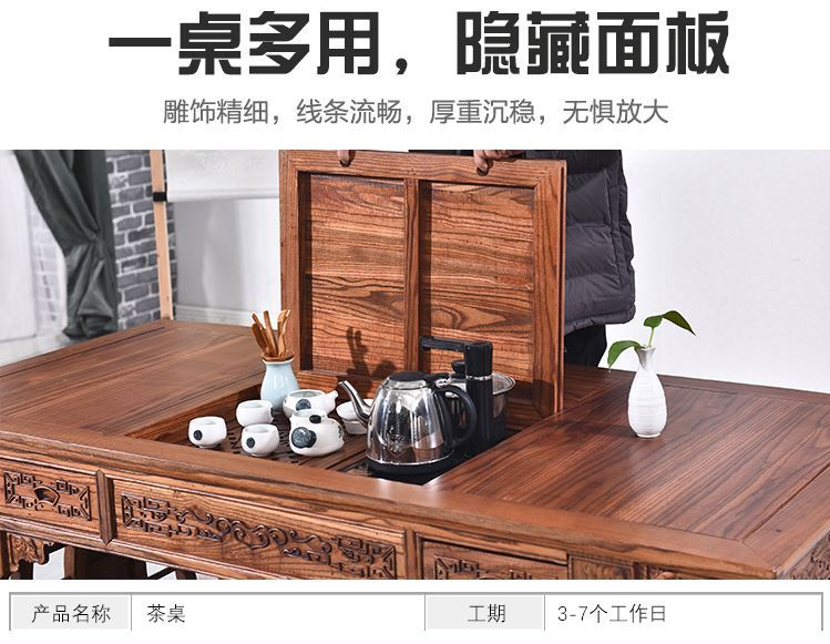 華生縁茶テーブル新中国式レジャーコピー古功夫茶何会かのお客様がお茶のテーブルを作ることになります。家庭用の実木彫刻茶テーブルと椅子の組み合わせは1.2メートルで、四輪椅子と四角い椅子があります。