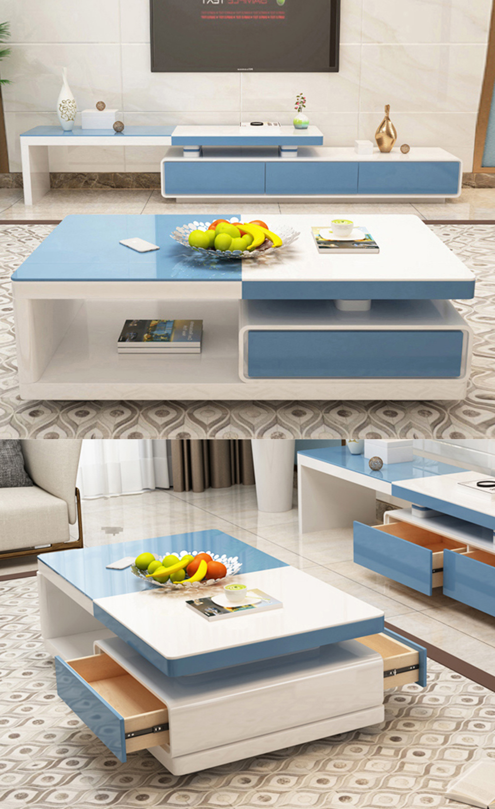 | 商品名称 | 華生縁焼漆茶何テレビの箱は簡単に現代のテレビの箱の保管物の小さい戸形の客間の茶何が伸縮することができますか?テレビの箱の組み合わせの家具の白黒の鋼色のガラスの茶何?1.3メートル |