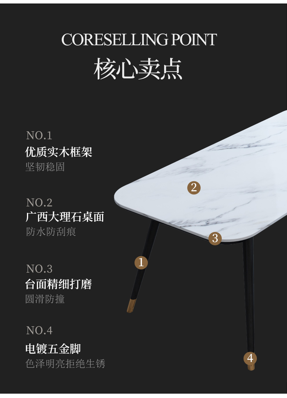 華生縁テーブルの大理石テーブルセットのテーブルテーブルです。テーブルは北欧の小さなテーブルの長方形のテーブルです。テーブルは六椅子+茶卓+テレビキャビネットです。