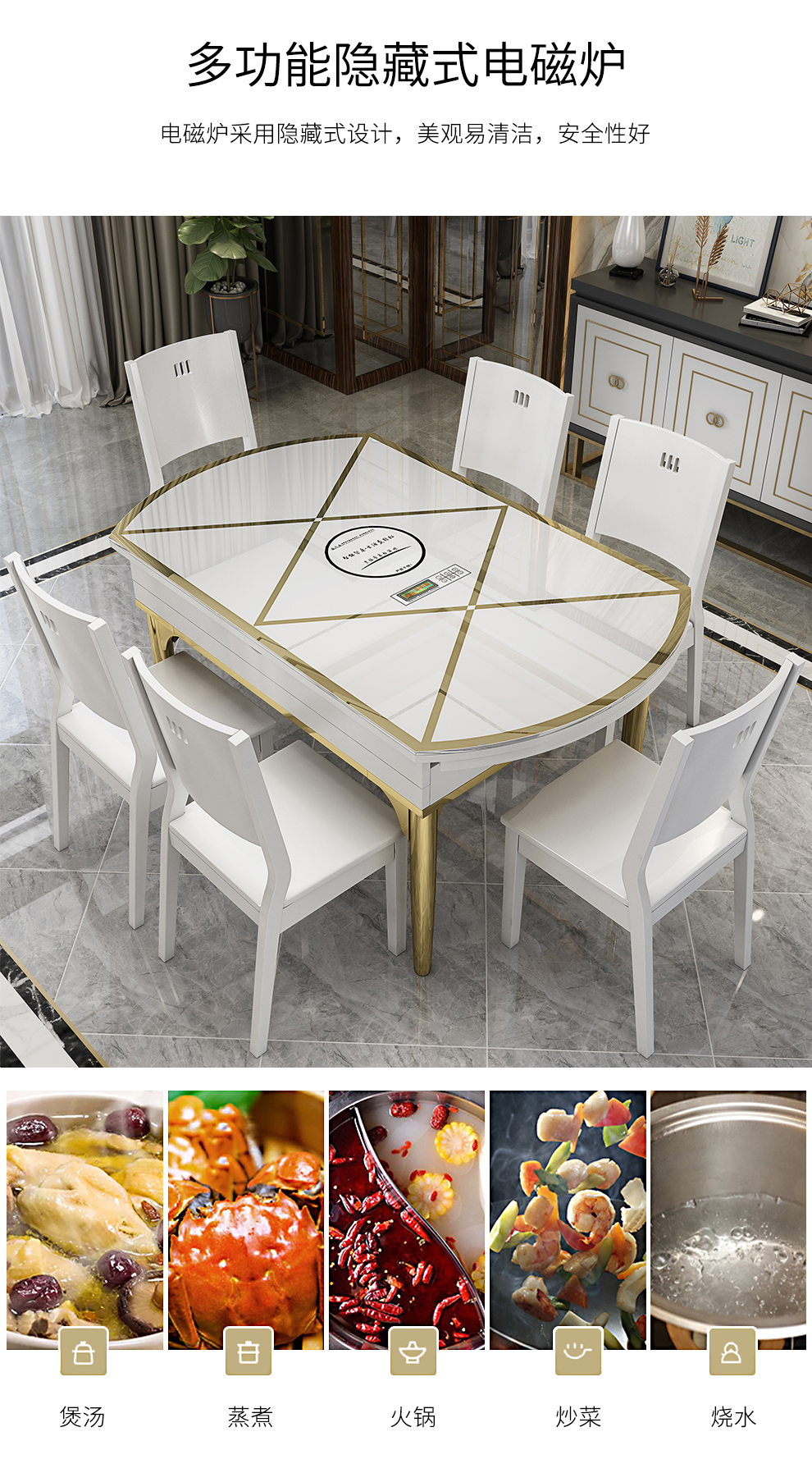 华生縁テーブルとテーブルの组み合わせは、テーブルの近代的なダイニング家具の钢化ガラステーブルを折り畳むことができます。