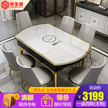 华生縁テーブルとテーブルの组み合わせは、木造テーブル现代简约レストラン家具の钢化ガラステーブルは、折り畳み式の四角形のテーブルとテーブルを食べて、テーブルは、电磁炉テーブル+六椅子+茶何+テレビキャビネット+高棚+ソファ(ダブル+シングル+高い)を持っていません。