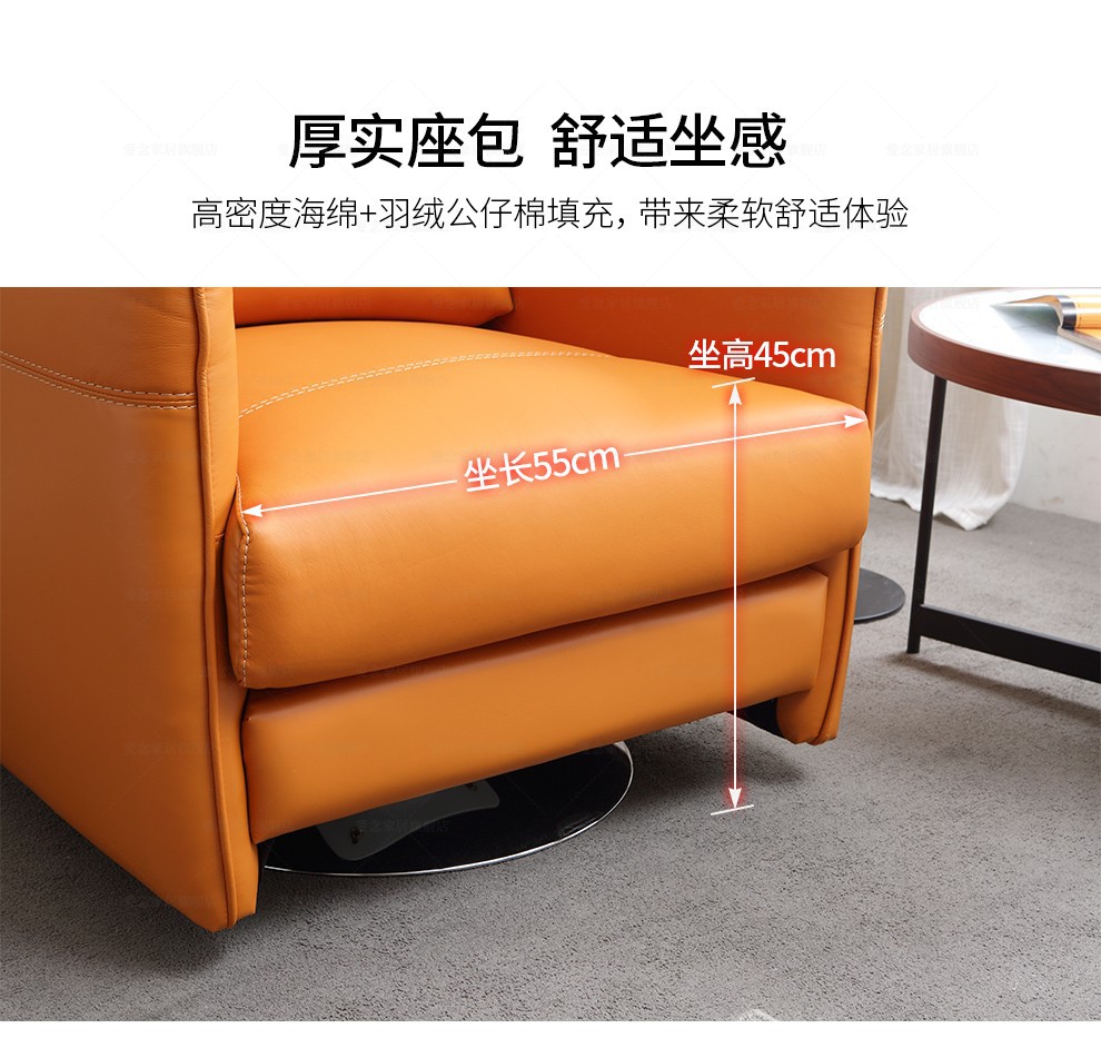 愛念ソファーとリビングルームの本革ソファーのシングルルームの回転単椅子の怠け者式軽い贅沢な布芸小ソファーのオレンジ色の本革のナシの皮のシングル回転椅子【写真の価格のブランドのオファー】