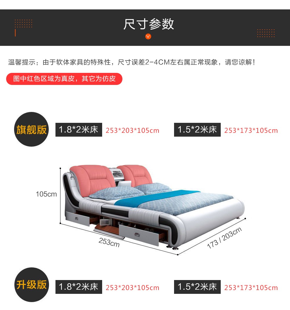 | 商品名称 | 華生縁ベッド真皮ベッドベッドベッドルームの軟床婚ベッドの引き出し1.8 m多機能高箱ベッドの主な寝台は現代で簡単です。 |